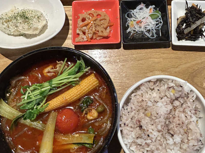 見た目も綺麗 野菜 春雨 ピリッと辛いスープ 美味しい😋