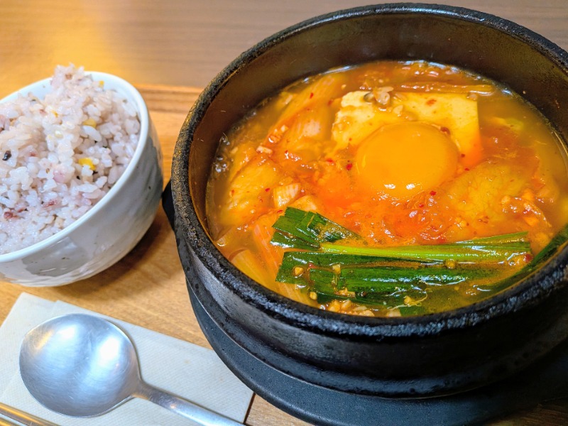 熱々グツグツ。ピリ辛、安定の旨辛さ❗いよいよ次は激辛に挑戦かな😄