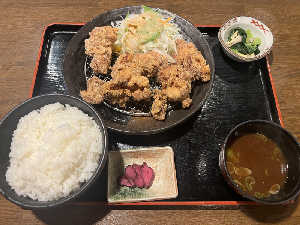 唐揚げのボリュームがスゴイのでご飯大盛りでちょうど良かった(笑) 相変わらず食事はホント美味しい。