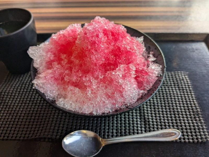 まだ涼しかったので、温かいお茶が欠かせない。ソフトクリーム乗せをメニューでやって欲しいなぁ