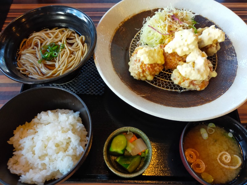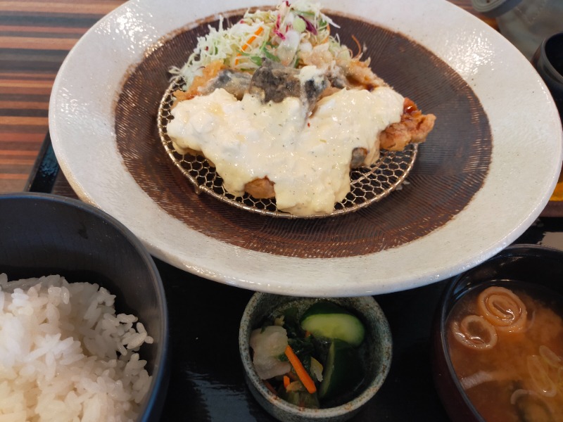 鮭の唐揚げにタルタルがよく合い美味しい😋