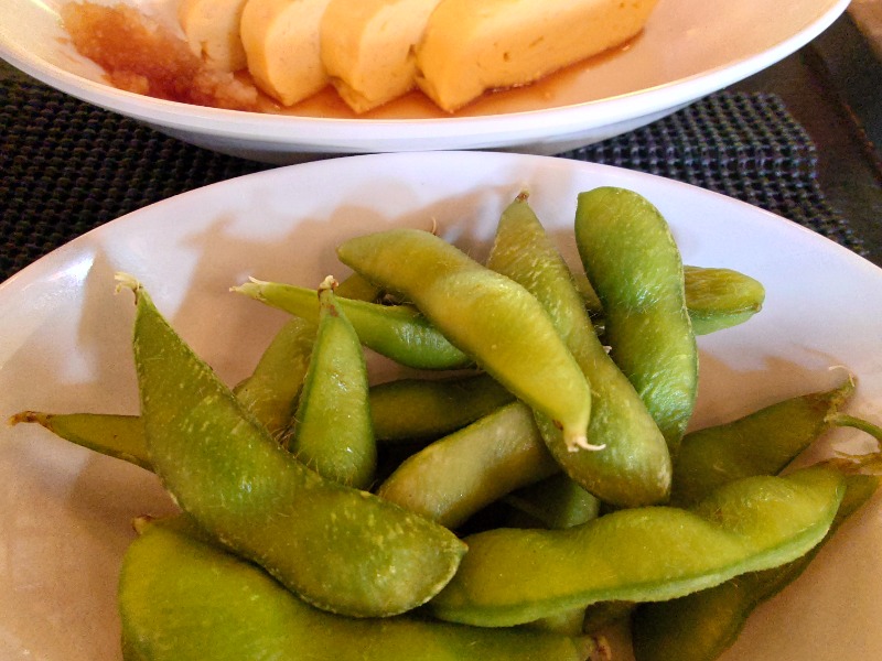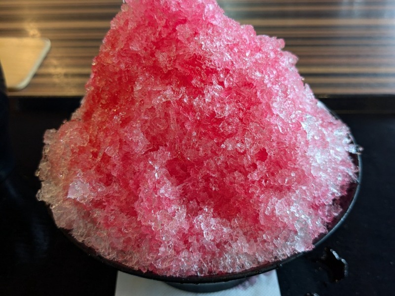 この時期のかき氷は最高。半分食べて、追いシロップしました。熱いお茶も大事ですね