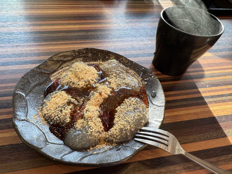 まだ涼しかったので、温かいお茶が欠かせない。ソフトクリーム乗せをメニューでやって欲しいなぁ