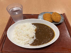 ちょいピリ辛のカレーに、サクサクほくほくのコロッケ最高でした🤤コスパ良すぎ!次は生姜焼き食べたい🐖