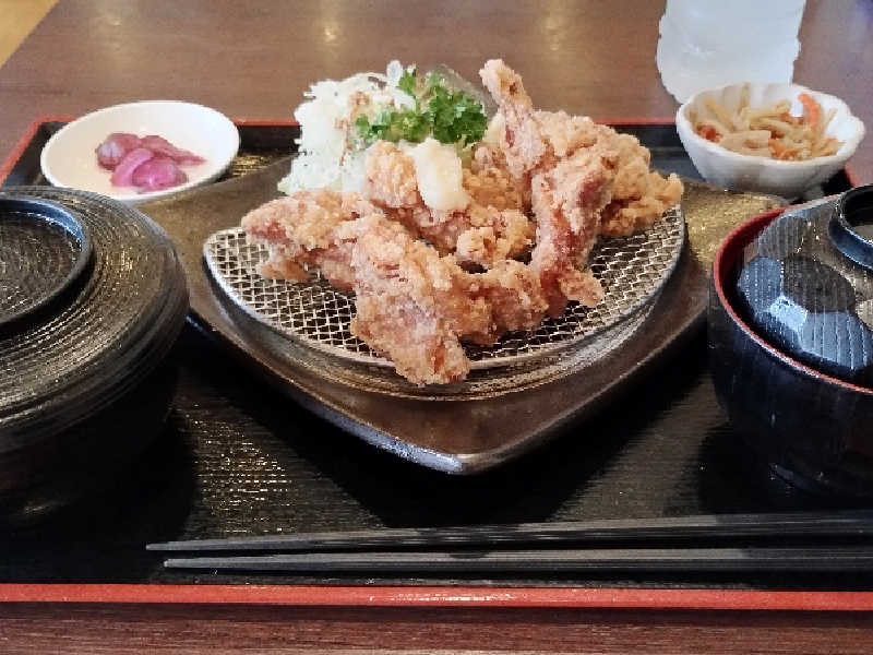 ランチ価格で900円。ご飯も多くて満足😊唐揚げも普通に美味しかった。ニンニクかけて食べました。