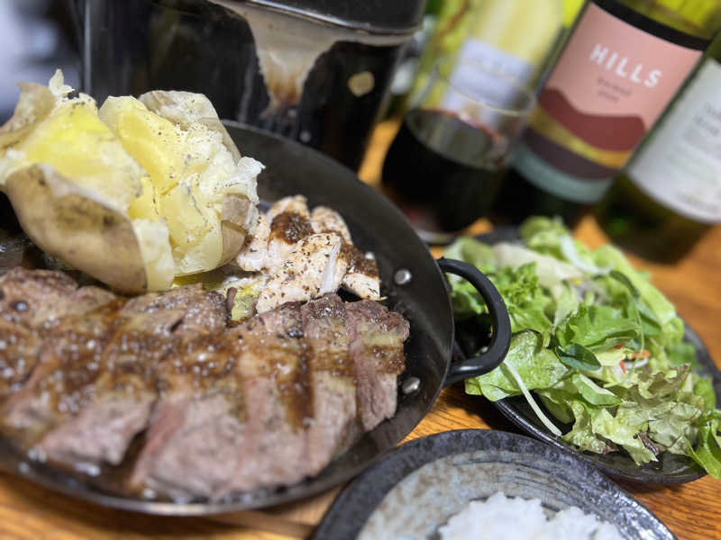 合わせるのは🇦🇺の赤で。久しぶりのお肉さいこ〜。来週の釣り遠征まで肉祭り🍖だ〜。