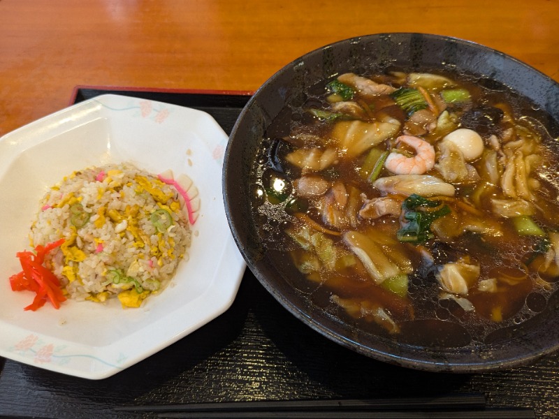 濃いめで具沢山のあんが美味しくて安定♡チャーハンも程よい味付けで美味しい!