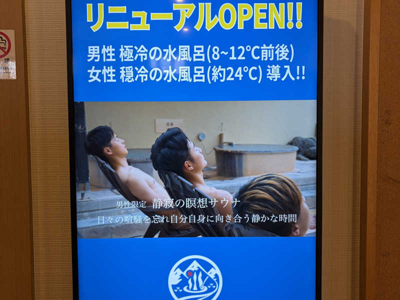 水風呂は備長炭水風呂にグルシンの極冷水風呂の二つ(極冷水風呂は最近リニューアルで増えたらしい)あるし、露天エリアにはアディロン他、椅子がたくさんあり(人も多いのでタイミングにより座れない場合あり)毎日熱波イベントもしてるし、サウナに力を入れてる施設だと分かる。