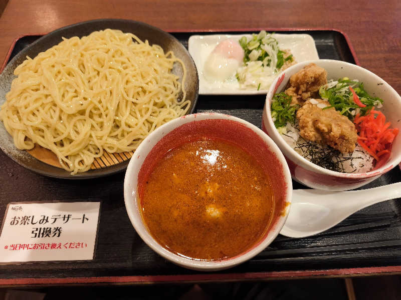 辛つけめん、ミニ唐揚げ丼 満腹です。