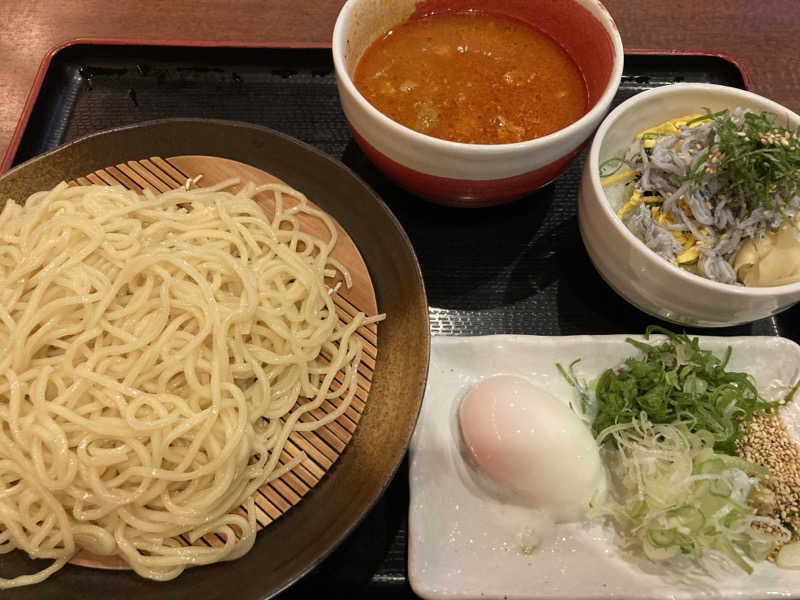辛つけ麺(そんな辛くない)とミニしらす丼