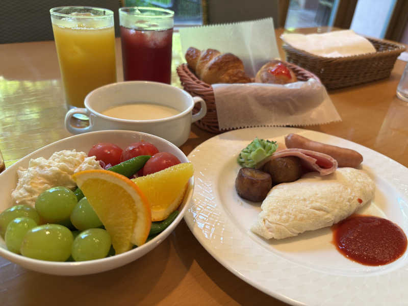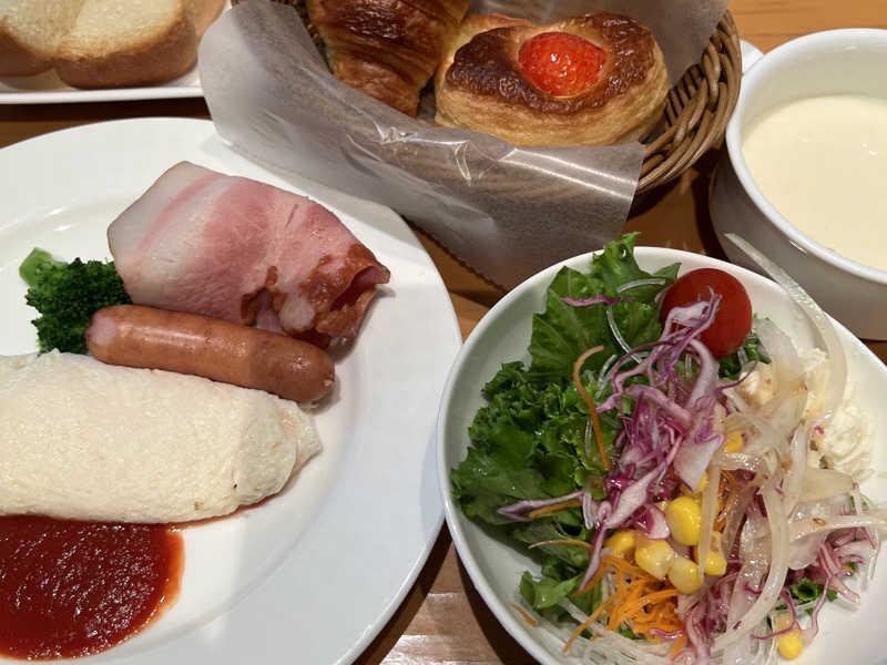 サ飯というか朝ごはん 北海道を存分に味わえる朝飯でした 自家製パンがうまい!