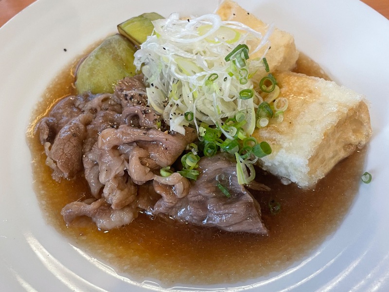 周年祭メニュー。出汁の効いた餡と肉と茄子豆腐の組み合わせが贅沢です。