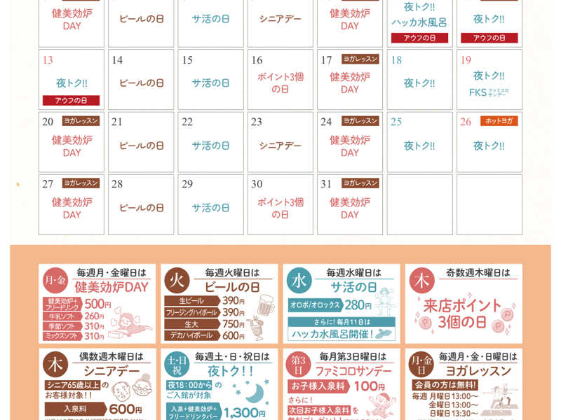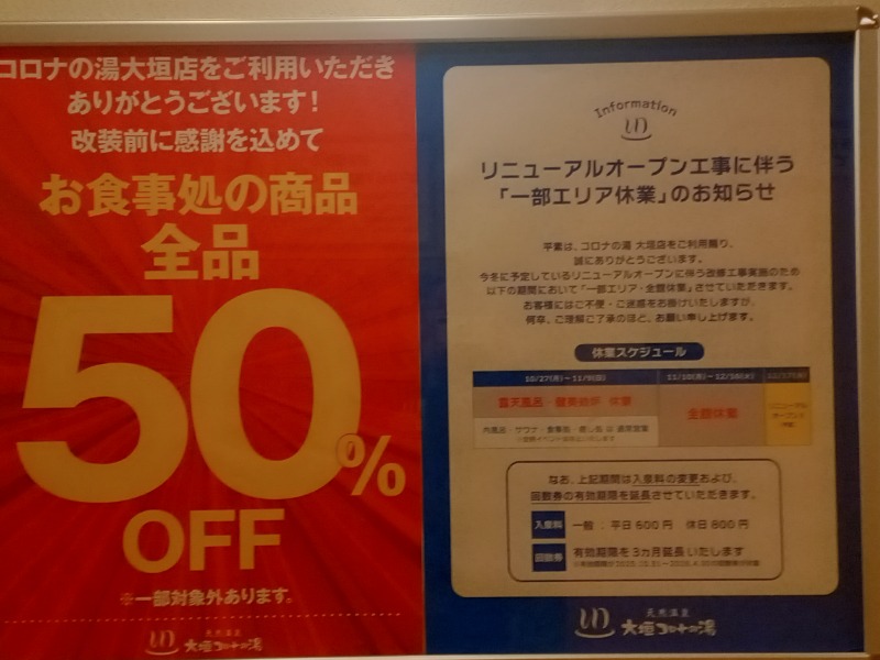 福山から大垣に転勤した知人を訪ねてコチラへ初入館。改装中で岩盤浴や露天風呂が閉鎖中なので少し割引してくれている👍更に食堂が全品半額なのも嬉しい。