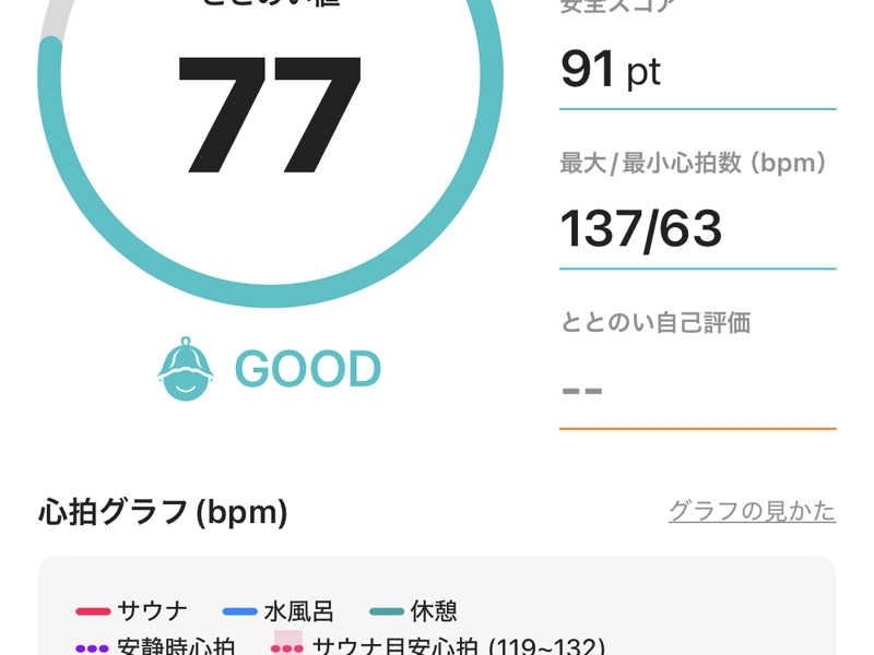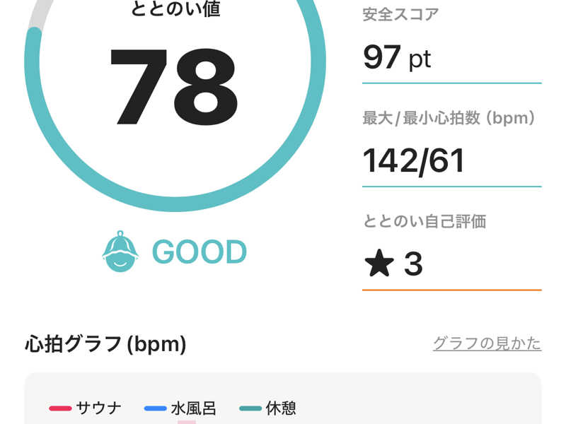 1セット目、広いTVありL字3段の最上段へ。ロウリュ等ないのでドライ。丁度良い熱さでTV見ながら10分滝汗。サ室は中々の年季入った感じで味がある👍15℃ちょっとと表示された水風呂に浸かり不感湯からデッキチェア、アクアレビューからととのい椅子と休憩。ジェットバスで湯通ししてもう一回。
