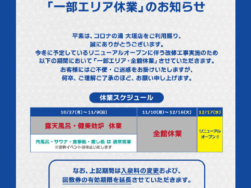 明日からリニューアルで12月半ば過ぎまで休業するが、どのような施設に生まれ変わるか楽しみだ!