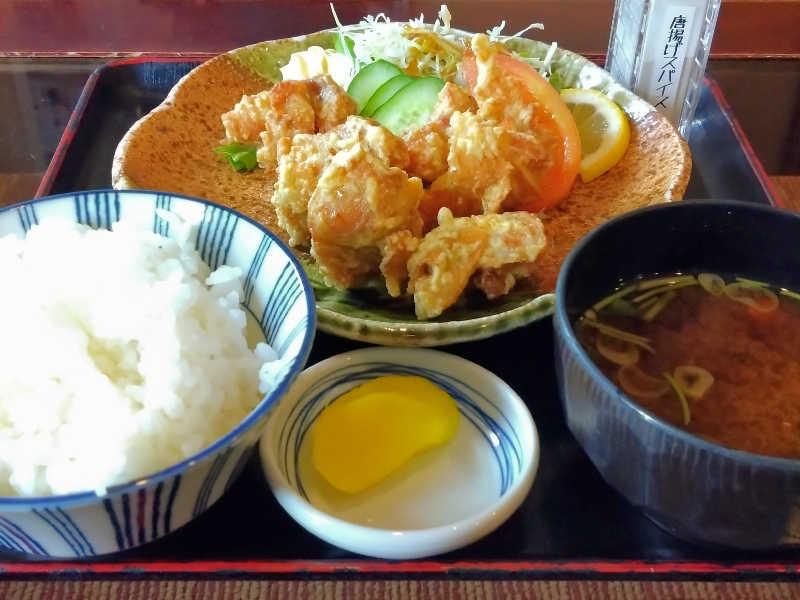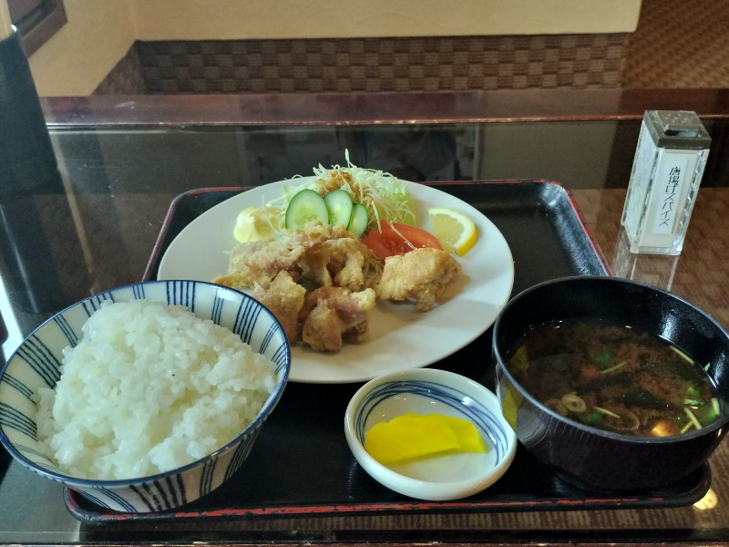 唐揚げの塩味と油分がたまりません。付属の唐揚げスパイスとマヨネーズを付けるとこれがまた…。
