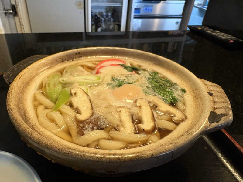 常連さんおすすめの鍋焼きうどん こりゃたまげた。うますぎる。