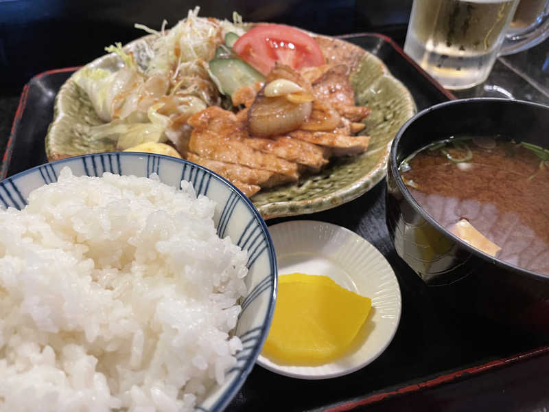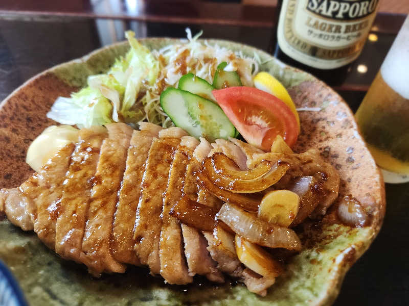 究極の昭和サウナに入った後に、ど直球な生姜焼きでタイムスリップした感じ。アクセントのニンニクが良い