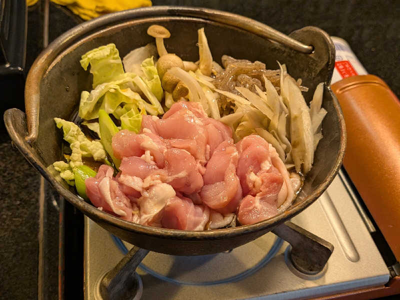 鶏肉がやけに美味い。締めは、うどん玉で。