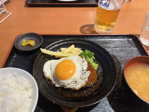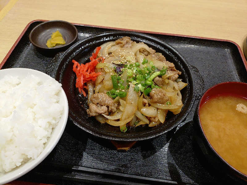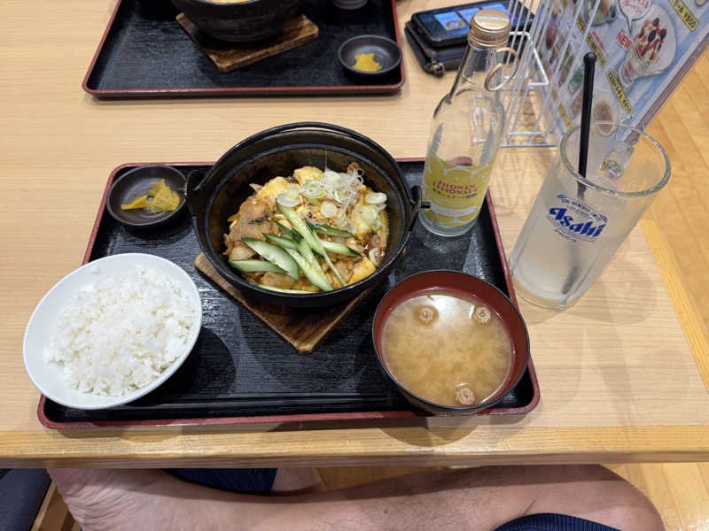 サウナ前に牛バラ定食とハイボール、シークワーサーサワーを頂きました!(風呂前に2人で)