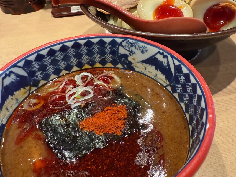 ここのラーメン豚骨がすごく強めでドロドロ。