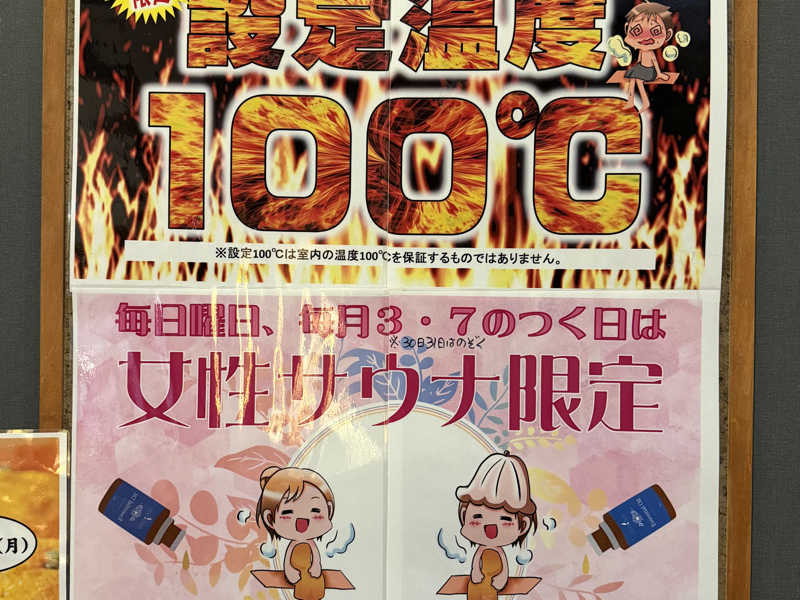 サ室に入ると壁が軽石の様な素材に張り替えられていました。気が付きませんでしたが床も張り替えられた様です。今日はサ室アツアツ!100℃超えでした。100℃設定は3か7が付く日がサウナの日になっているのですが、今日も100℃…設定が変わったのでしょうか??まぁ何にせよ嬉しい限り。スーパー銭湯でサウナ100℃は結構珍しいですからね。