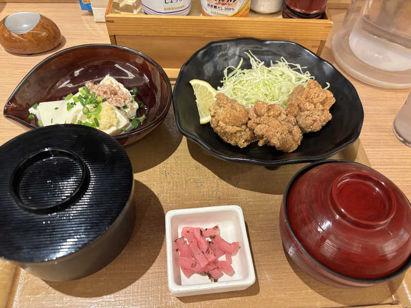 鯖も唐揚げもおいしかったけど、小鉢が水っぽくて残念。混雑予想日、沢山作り置いたら水がでちゃったかな?