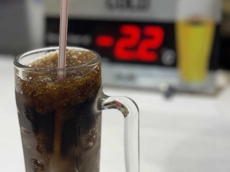 キンキンのシャリシャリが喉にしみる。 甘さ控えめで飲みやすくて、炭酸のシュワ感がちょうどいい。