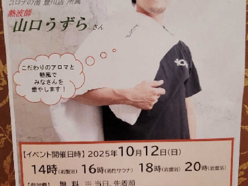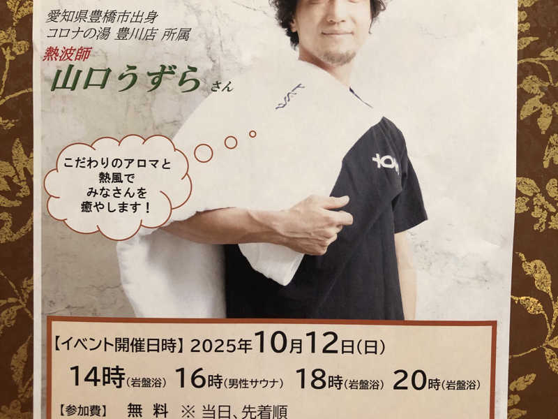 タオル捌きは、やさしい、マイルド、キレッキレ、くるくる回す技、どれも力強くかっこよかった♪サ室内の熱波の動きを感じとれました😲