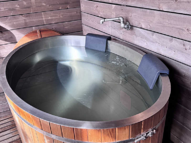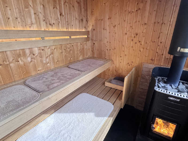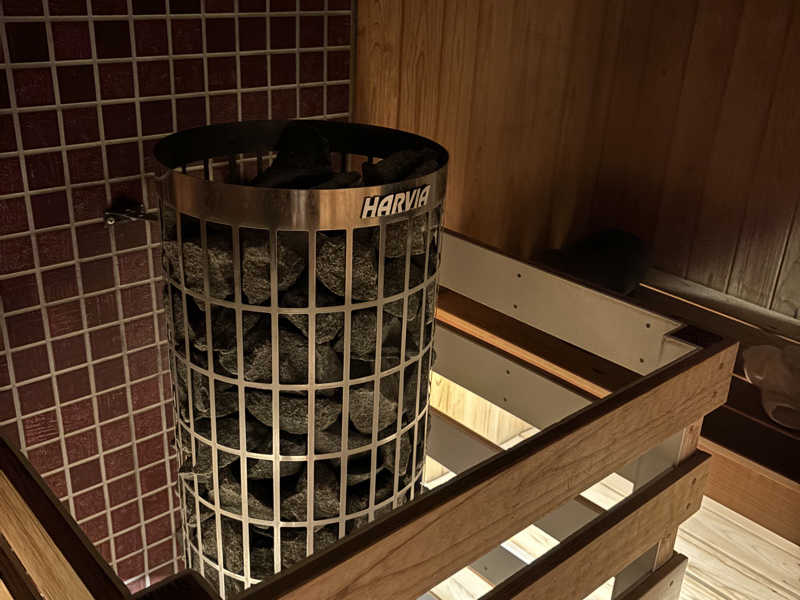 サウナ室は、貸切とは思えない広さで、真ん中にサウナストーブがあり、両脇に長椅子があり、2人が横に寝れる広さで快適!サウナ室にはサウナマットとサウナクッションがあるので、自分の好きなスタイルで楽しめる!普段は中々出来ない寝そべりサウナや彼と一緒にサウナに入れて貸切ならでは!かなりサウナもアツアツで、ロウリュすると温度計は100度を示してた!2人でアウフグースなどもして汗ダラダラになったところで、水風呂へ!