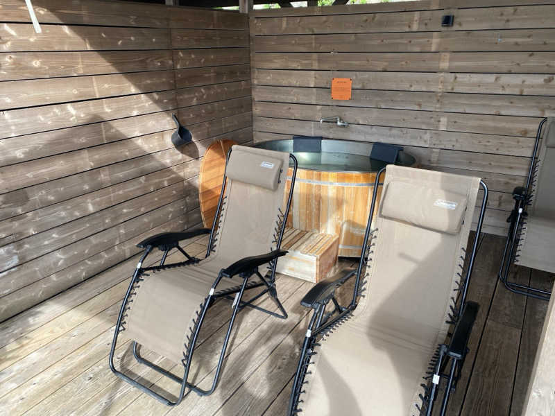 インフィニティチェアでゆっくり外気浴して、肌寒い時はポンチョも使って、サトヤマテラスに続いて最高のサ活ができました!