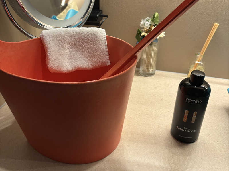 サウナ室、水風呂、シャワー、ととのい椅子2脚、インフィニティベッド2脚、氷(水風呂用)、アロマ水、冷蔵庫にレモン水、シャンプーリンスボディソープ、タオル、化粧水乳液等、ドライヤーなどなど必要なものは全て用意があるので、持ち物は水着とサウナハットだけでOK👌