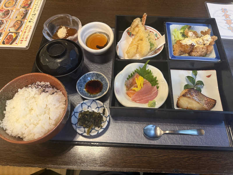 右上の大根と豚肉を炊いたやつ(名前わからんw)お出汁がしみしみで美味しかったぁ😋ご飯大盛りは大正解👍