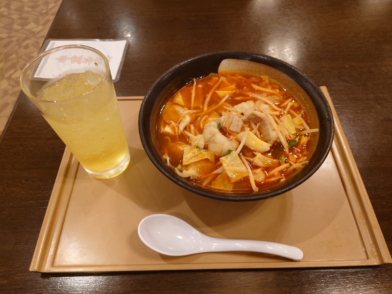 リアックス頼んだけど、 水曜サ活でラーメンにオロポ付いて来た😂 ジュースで腹パンパン