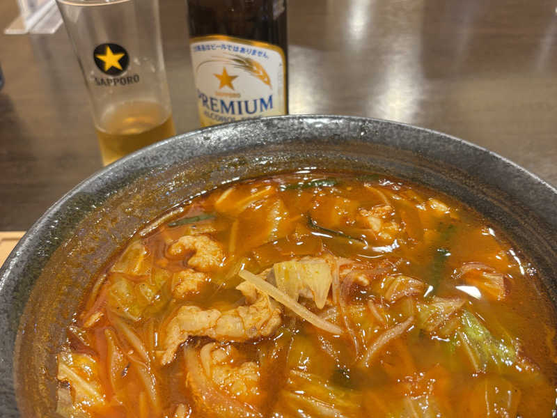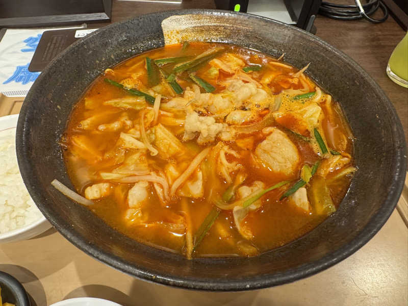 炒め野菜、ホルモンうまし。ウマ辛スープを飲み干し完食。