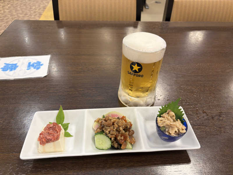 今回1番右の小鉢がいつもと違う 乾物【貝ひもかな】と枝豆の和え物 美味い 定番化して欲しい