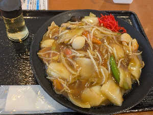 冷たい牛乳もあんかけ焼きそばも 安定の美味しさでした😊