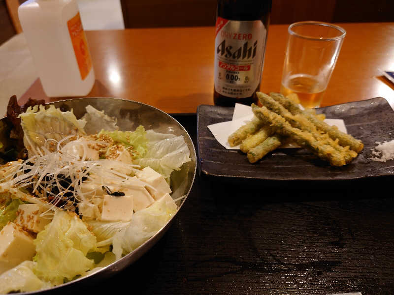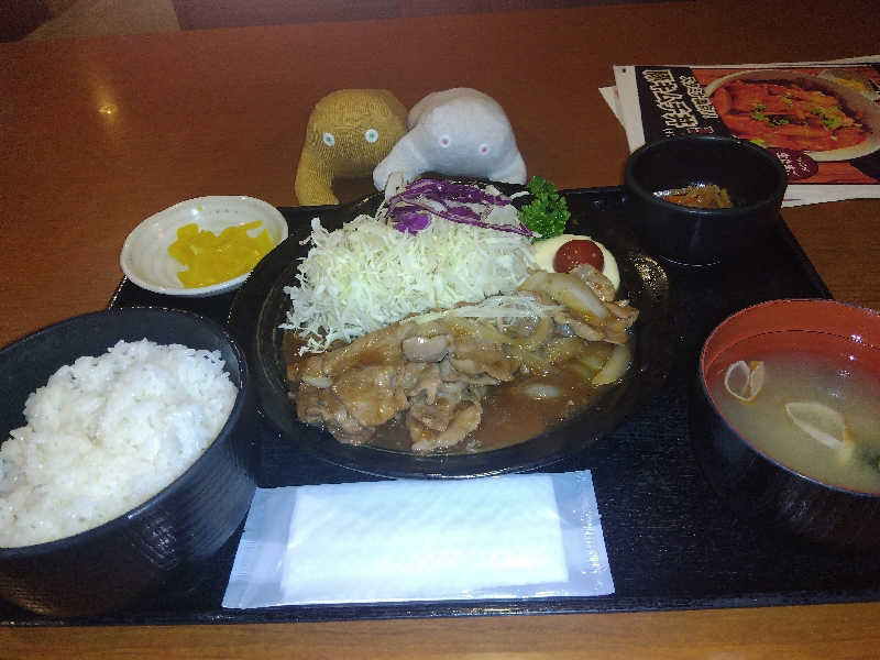 揚げた麺がパリパリで食感も楽しめて美味しい😋 セット飯は普通サウナや岩盤浴に入る前から汗が止まらん💦