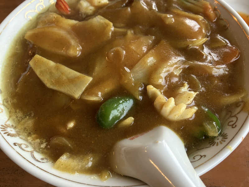 あっさり魚介スープにカレー餡がかかった美味いやつ。見た目に反してあっさりしとるよ。