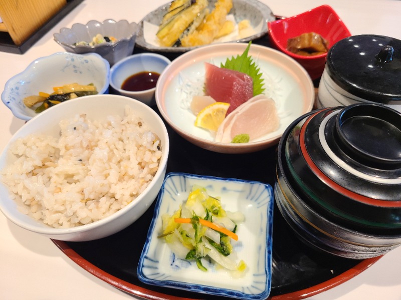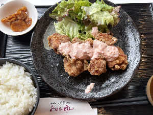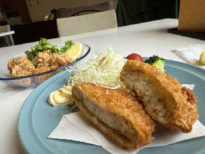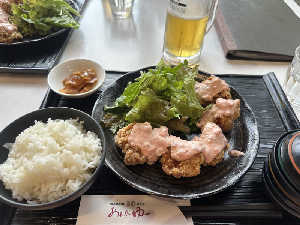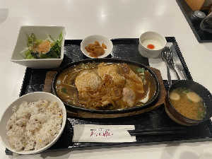 デザートまでついてボリューム 満点💯水は天然水きんらん水 お茶も無料でいただけます