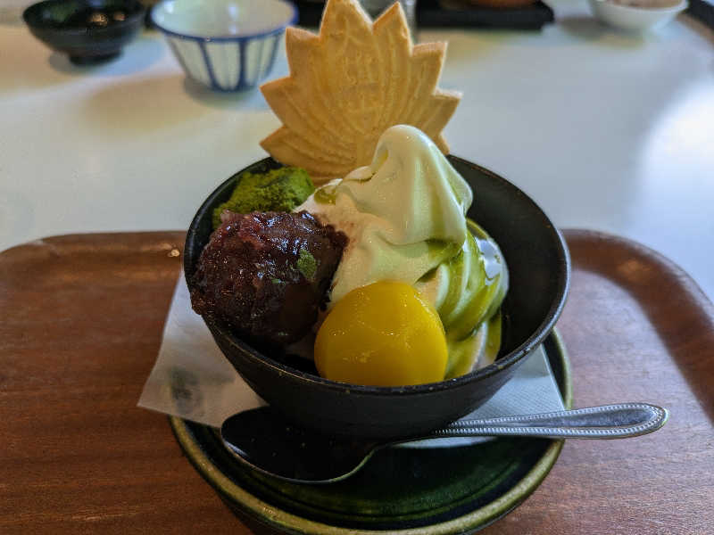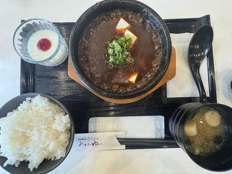 啜るとお茶の良い香り。まぐろ2切れは少し寂しいけど美味しかった☺️杏仁豆腐付きなのも嬉しいポイント!