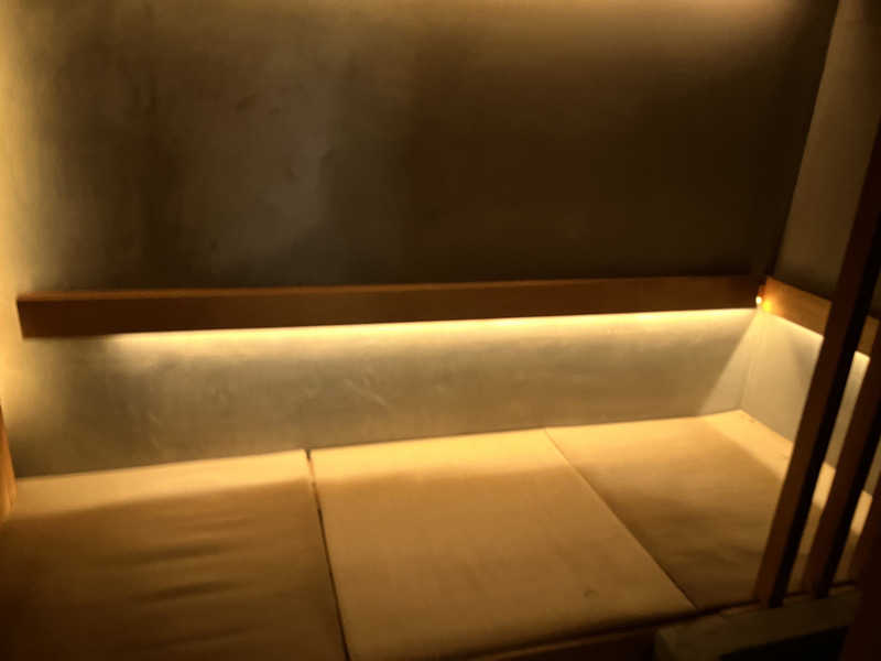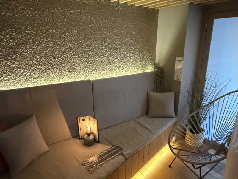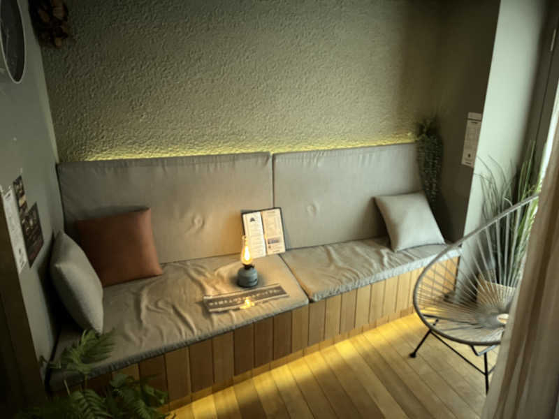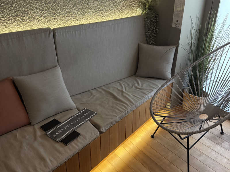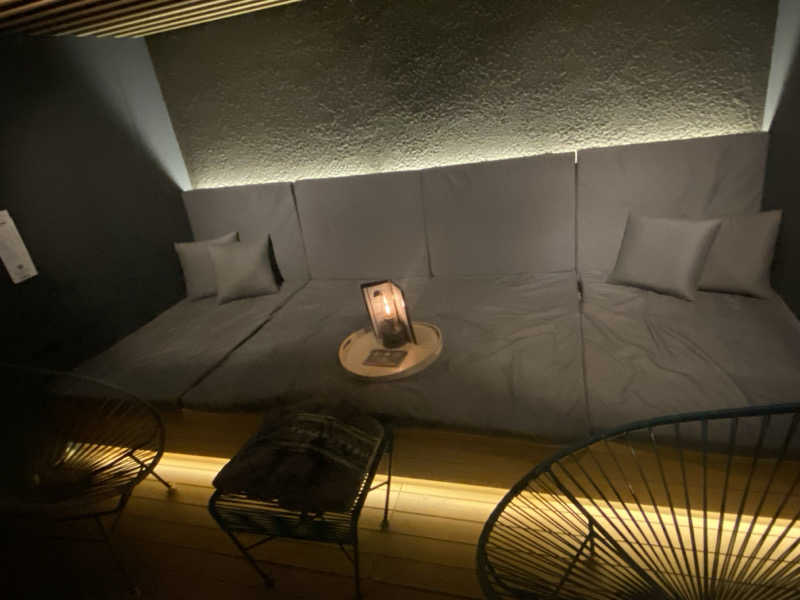 あぐらで蒸され【ソファー】で向きを変えて水風呂の天上に反射した水面の揺らぎを見つつととのいました😄