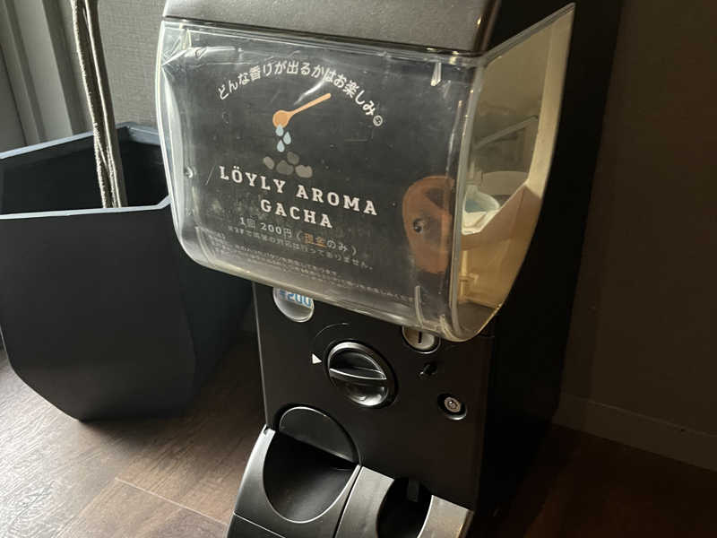 エレベーターで3Fに来たのですがスタッフさんは清掃中との事で2Fのサウナ階へ向かいました。エレベーターホールにあるアロマガチャを200円(ここは現金)で購入し【ベリー】をゲットです🫐