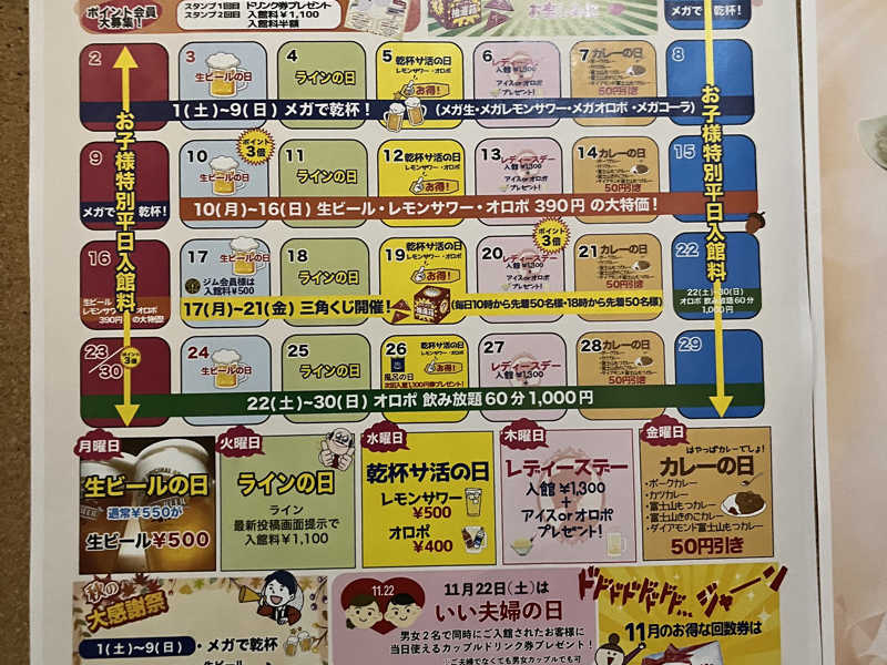 パチンコ店併設で懐かしのメンズサウナのような雰囲気ですが、レディースフロアもあります👩🏻お子さん向けイベントもあり、老若男女に愛されていますね🥰
