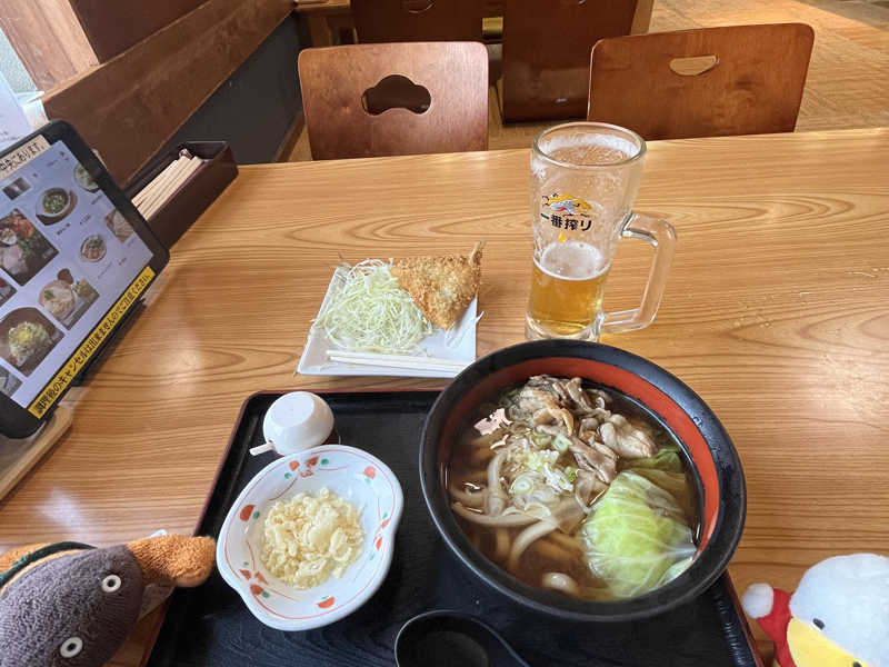 鯵三昧定食狙って来たのに、なかった。だから、鯵フライ注文。🍺はLINEのクーポンでゲット!