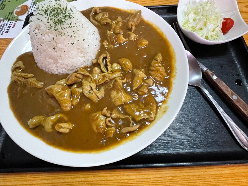 丁寧に下処理されたモツを使ったカレー。 とても美味しい😋