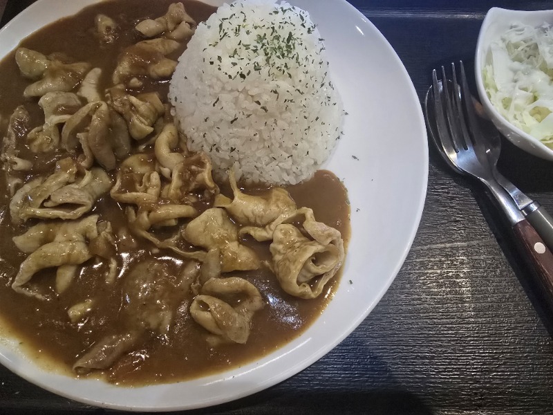 見た目可愛かったです。 カレーは辛め。 もつはボリュームありました。