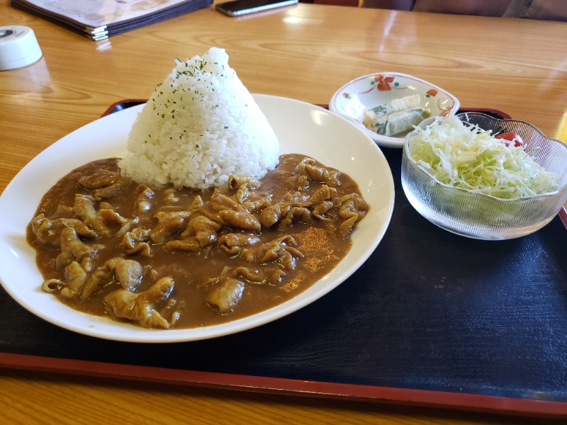 富士山眺めてからの富士山カレー。モツがたっぷりで食べ応えもあって美味。
