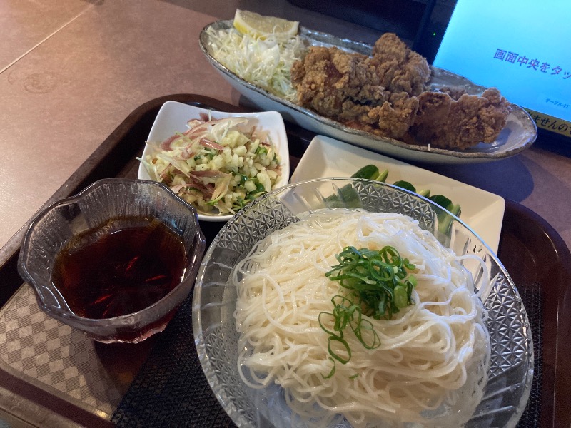 腰が強くてプリプリなそうめんと薬味たっぷりで何気に食べ応えがある