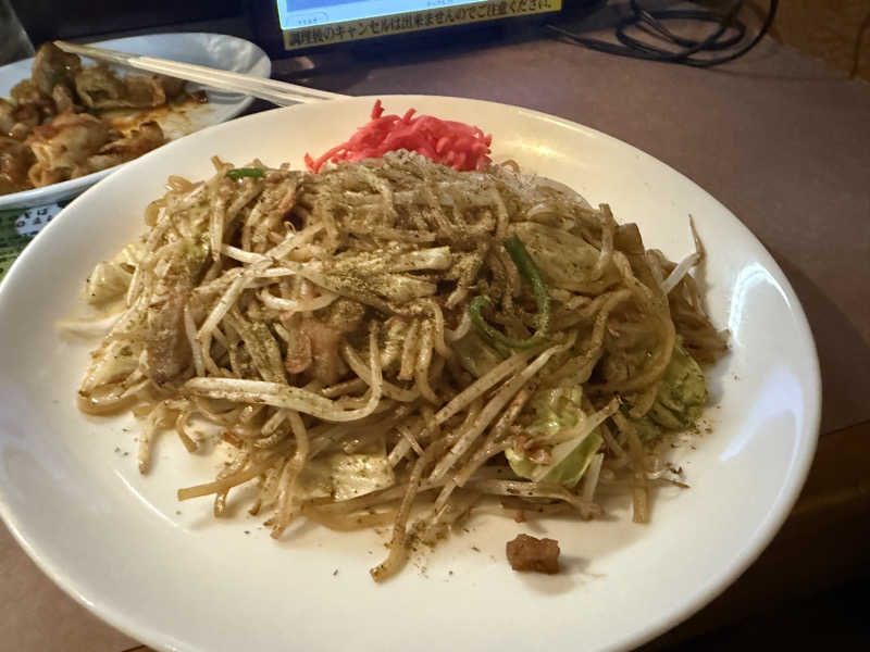 ここに来る楽しみの一つ!やはりピリ辛モツ最高!富士宮焼きそばも肉かすの旨みが効いてて美味!